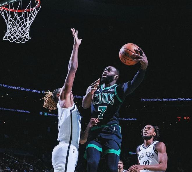 杰伦布朗由于早早吃到了5次犯规,只能长时间作壁上观,在出战的32分钟时间,18次出手命中了9球,打出了26+8+4+2的全面个人数据,而替补登场的西蒙斯则飙下了23分,可惜丢掉了自己赖以生存的防守,没有限制住篮网的进攻,让凯尔特人只能接受主场输球的结局。