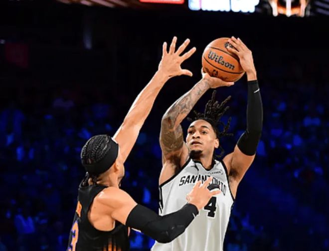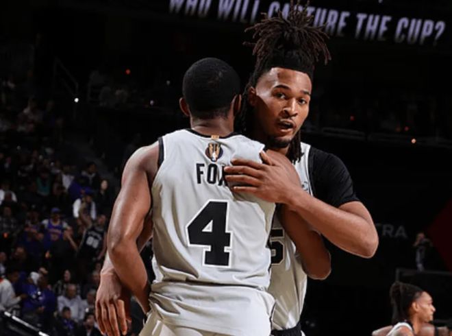 马刺队这边,文班亚马出战25分钟,投篮17中7、三分6中2得到18分6篮板1助攻1抢断2盖帽;哈珀14投7中,其中三分球7投5中,得到21分7篮板;斯尔得到15分7篮板12助攻,创造NBA杯决赛单场最高助攻数纪录,一战连创两大NBA神迹。