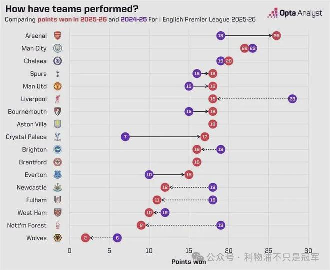 此外,本赛季前11轮英超各队的积分与上赛季同期相比,利物浦少了10分(本赛季18分,上赛季28分),与诺丁汉森林(本赛季9分,上赛季19分)并列退步最大球队。两支球队本周末“菜鸡互啄”直接对决!